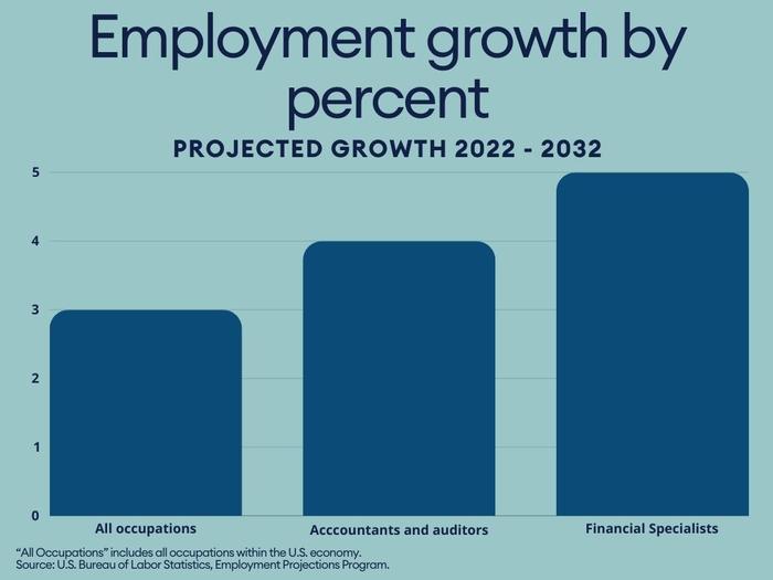Accountants are continually in high demand as businesses, government agencies, and individuals all rely on their skills to manage financial records, ensure compliance with regulations, and provide strategic financial guidance, so this role is generally in high demand. Currently, the accountant unemployment rate is at record lows. The United States Bureau of Labor Statistics forecasts that employment of accountants and auditors will grow four percent (approximately 126,000 job openings per year) from 2022 to 20321. Other sources forecast higher growth due to the retirement rate of current accountants plus the need for more specialized accountants.
