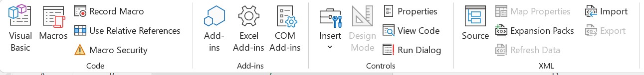 1. After clicking the Developer tab, you will see the options shown in Figure 2.