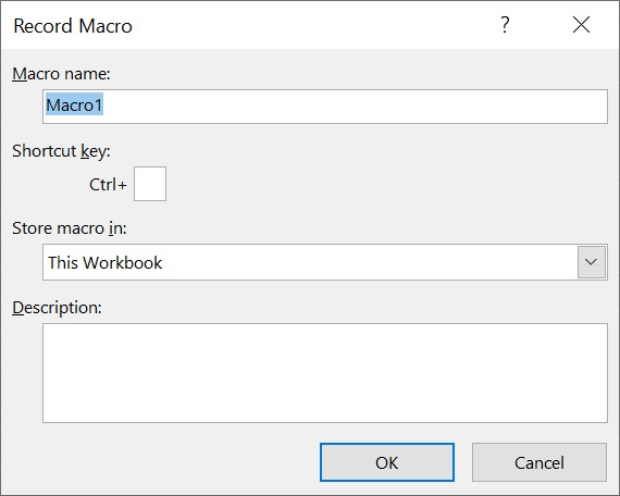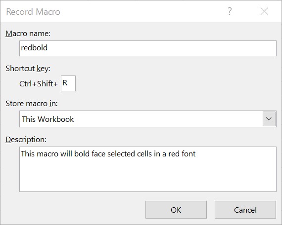 4. Optionally, type a description of the macro in the Description box. Then click OK.